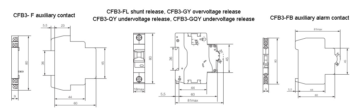 The CFB3-63/125 series circuit breakers are equipped with accessories such as CFB3-F auxiliary contacts, CFB3-FB auxiliary alarm contacts, CFB3-FL shunt release, CFB3-QY Undervoltage release, CFB3-GY overvoltage release, CFB3-GQY overvoltage release, etc., providing convenience for intelligent control of smart buildings.